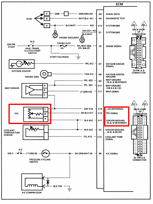 -jos EI OLE 4,5VDC - 5VDC niin silloin TPS ei saa tarvitsemaansa jännitettä ECM:ltä