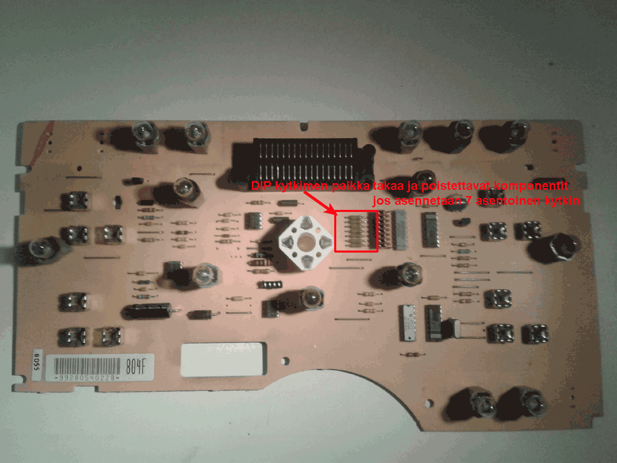 Kun ohjelmoit myöhemmin DIP-kytkimellä uusia asetuksia voit tehdä sen purkamatta koko mittaristoa siten, että poistaa mittarin edestä mittaritaulun kehyksen, kaarevan plexin ja sen alla olevan muovisen levyn, jossa ovat mittareiden ja merkkivalojen ja trippimittarin nollaustapin reiät. Sen jälkeen on poistettava nopeusmittari joka on neljällä ruuvilla kiinni ja painettu keskeltä neli loviseen kiinnittimeensä. Varovasti nostamalla ulos piirikortilta.