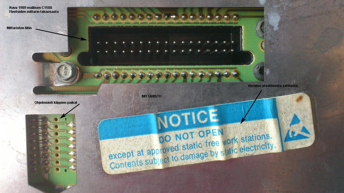 Vedä mittaristo ulos ja muista, että kun käsittelet sitä niin sinun tulisi mielellään jotenkin maadoittaa irroittamasi osa ja mielellään myös itsesi. Mittarin takana nimittäin on varoitus staattisensähkön mahdollisista epäsuotuisista vaikutuksista mittariston sisällä oleviin komponentteihin.