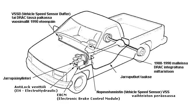 Jos muutat välityssuhteita tai rengaskokoa auton nopeusmittari, vakionopeuslaite ja ABS järjestelmä eivät toimi enää oikein koska ne saavat alkuperäisestä poikkeavaa tietoa DRAC:ltä tai VSSB:ltä. Puoli tuumaa ( 1/2") on joittenkin lähteiden mukaan se raja renkaan halkaisijassa jonka jälkeen alkaa tulla vika ilmoituksia. Edellisten muutosten takia et toden näköisesti saa myöskään BRAKE valoa poistumaan. Siksi seuraavat sivut ovat tarpeen niille, jotka haluavat tehdä muutoksia laitteisiin itse niin, että niistä tuleva informaatio olisi oikeaa ja jarrut ja mittarit toimisivat niinkuin niitten kuuluisikin toimia.