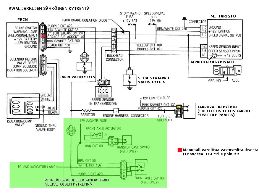 Älä kytke ALDL liittimen H ja A napoja yhteen jos BRAKE valo ei ole päällä...siitä tulee väärä vikakoodi 9 joka sytyttää BRAKE valon ja kytkee RWAL:n pois päältä