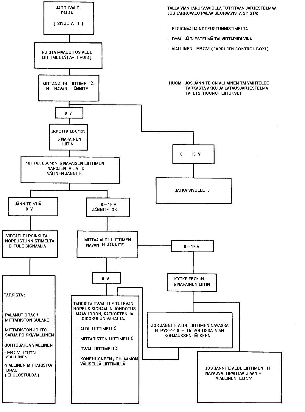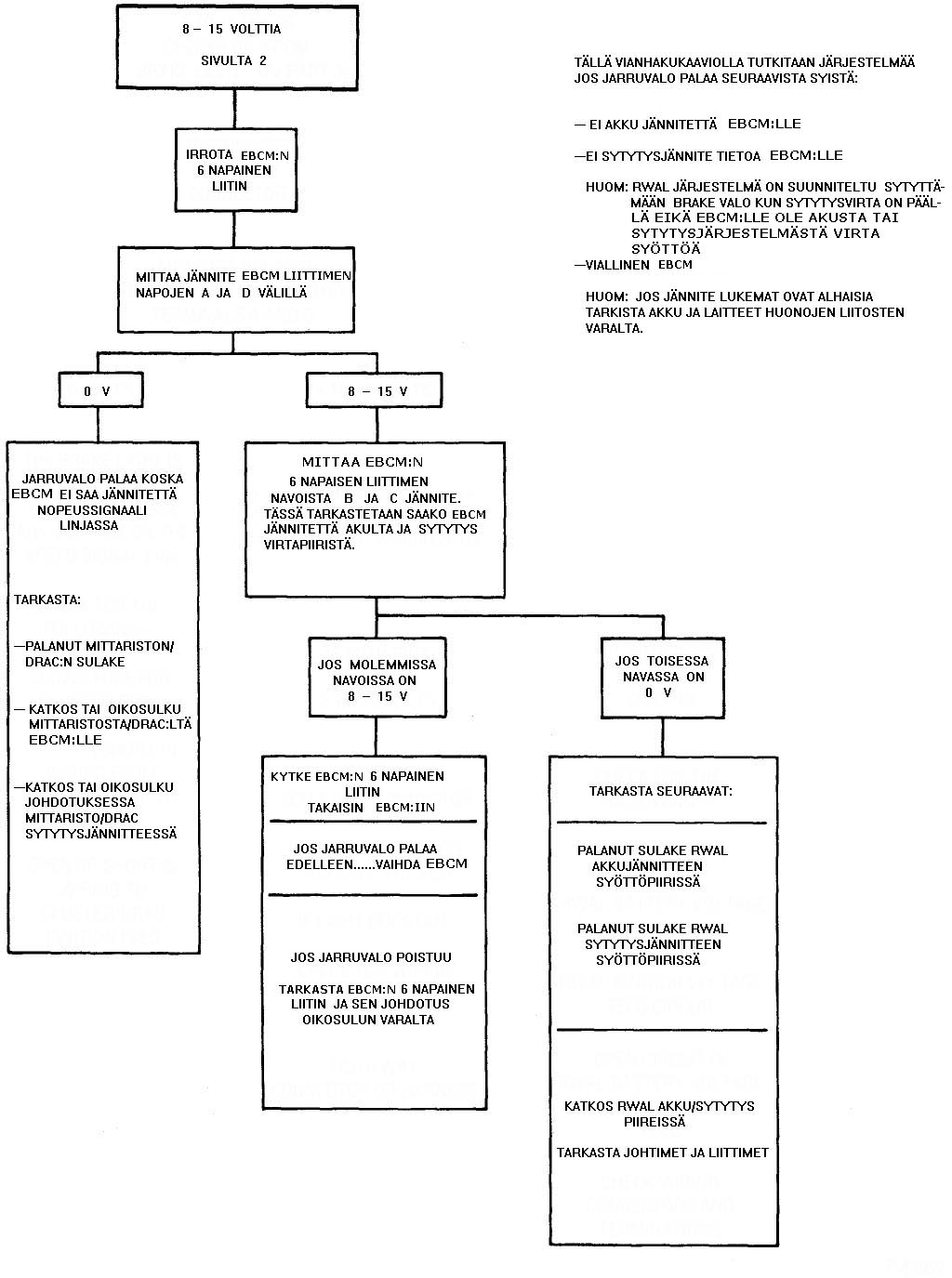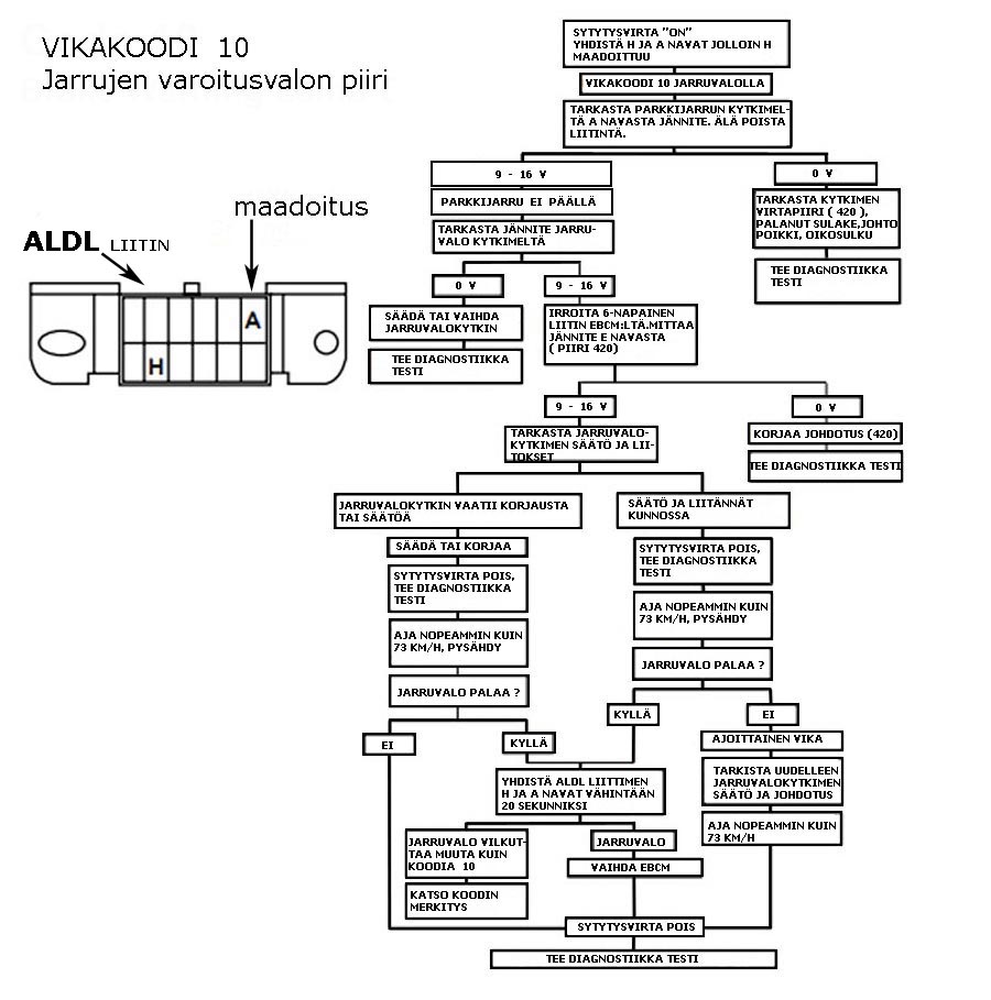 Vianhaku on - jos ei muuta - niin ainakin järjestelmällistä näitten kaavioiden avulla. Mittaukseen voi käyttää nykyaikaisia suuri impedanssisia digitaalimittareita, joita löytyy kaikista autotarvike liikkeistä. Testaaminen testilampun avulla voi tuottaa vääriä tuloksia.
