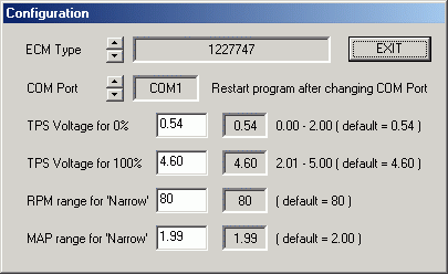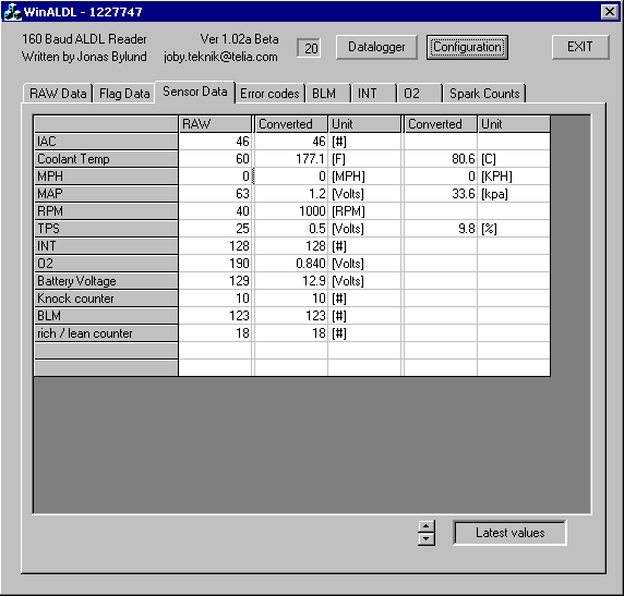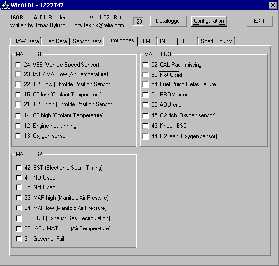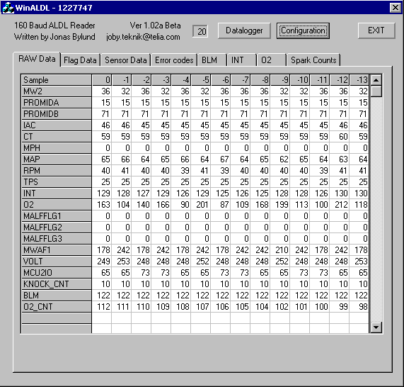 Tämä sivu on osittain kopioitu Jonas Bylyndin luvalla ja suomennettu.Ohjelman yläosassa on kolme painonappia. Yksi avaa tietojen keruun asetukset (data logging), yksi avaa asetukset (configuration dialog) ja viimeinen on poistu (EXIT) nappi. Ne ovat aina näkyvissä. Ohjelman pääosa näyttää koneen arvoja. 8 taulukkoa käytetään valitsemaan mitä arvoja halutaan nähdä.