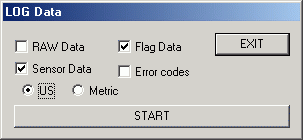 Tämä on tietojen keräyksen valinta ikkuna. Voit valita mitä tietoa tallennetaan ja millä järjestelmällä (metrinen / tuumainen) ilmaisut ja tallennukset tehdään.