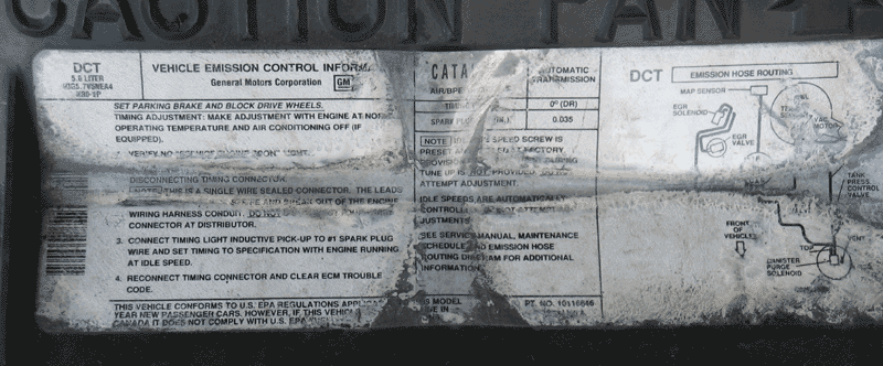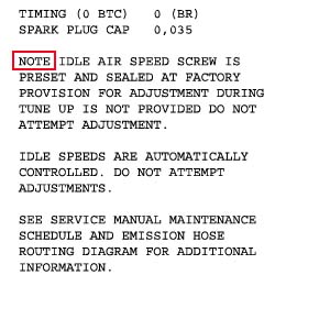 Niinpä olen kerännyt eripuolilta palasista yhden kokonaisen tekstin, jossa on täydellisenä se mitä kilvessä lukee. Täällä on sytytyksensäädöstä ohje 1 ja ohje 2. Lisäksi kuva moottorin ympärillä olevista letkuista.