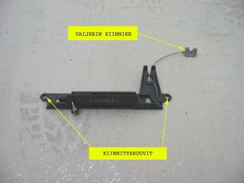 käyttövaijeri rattiputkesta vaihdekepin kääntämästä osasta. Kiinnitin on pellistä
